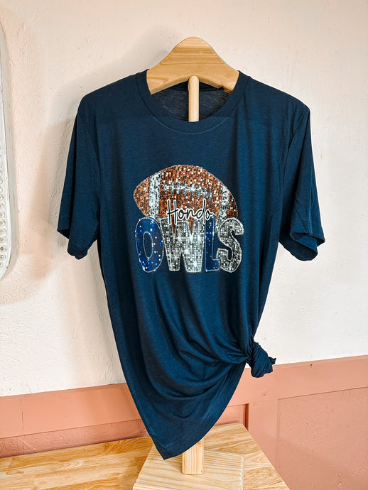 Faux Glitter Hondo Owls Football