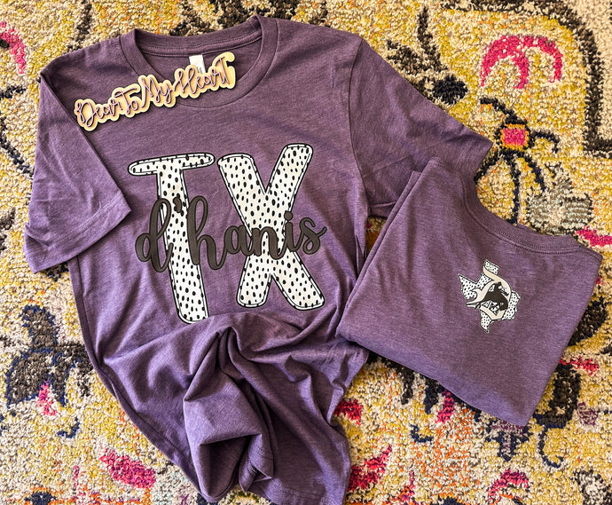 Purple Sequin Bow Chanielle Oversized Cuff Sleeve Tee