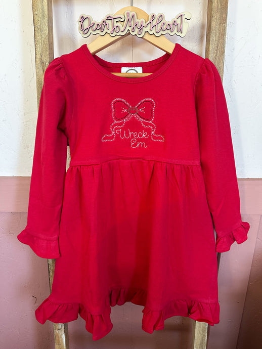 Embroidered Football Bow Ruffle Dress - Custom School Colors